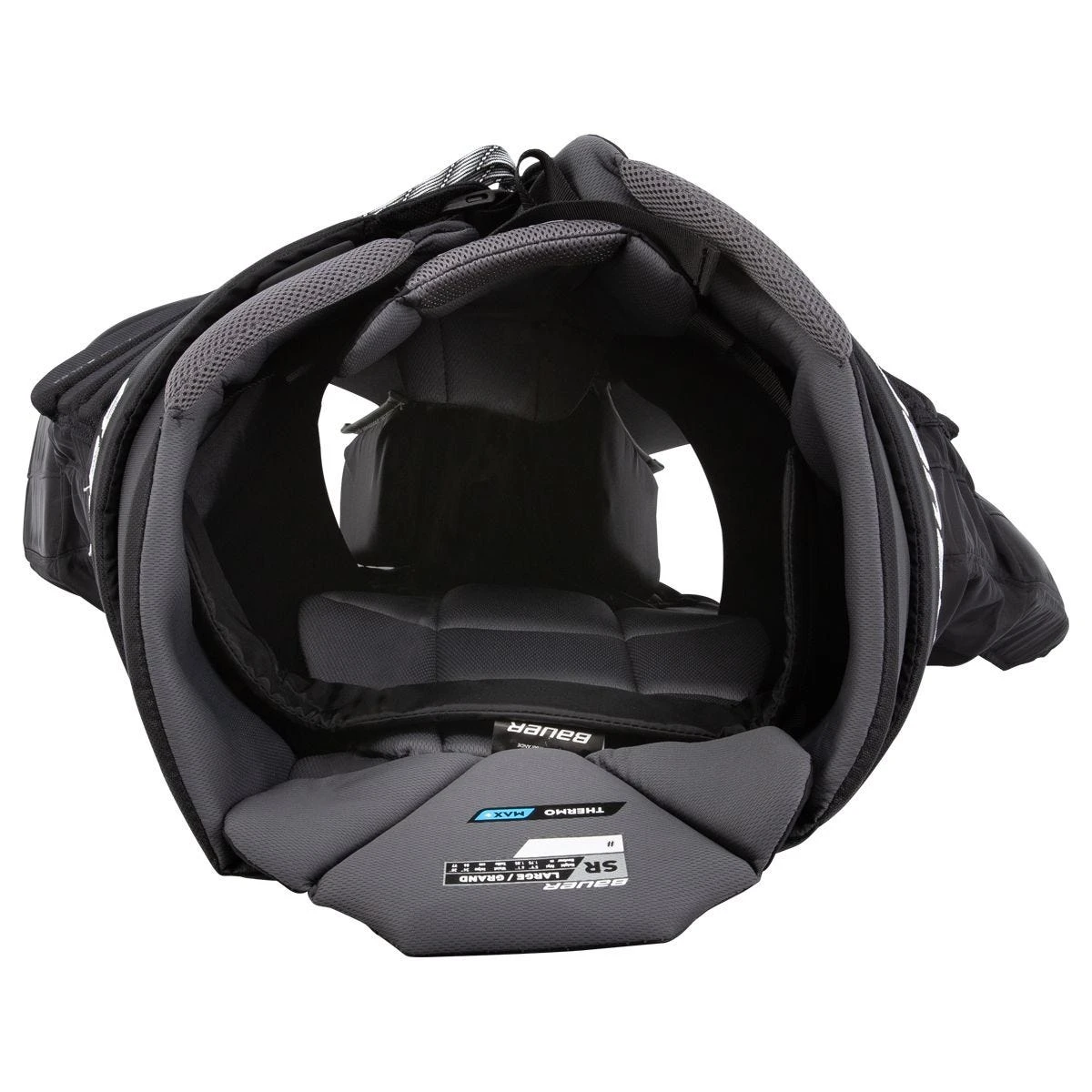 Along the inside, a Thermomax+ liner helps keep the goaltender cool physically to help against overheating during long sessions. Finally, on the inside you will find an internal loop provided to attach a knee guard directly to the pants.
