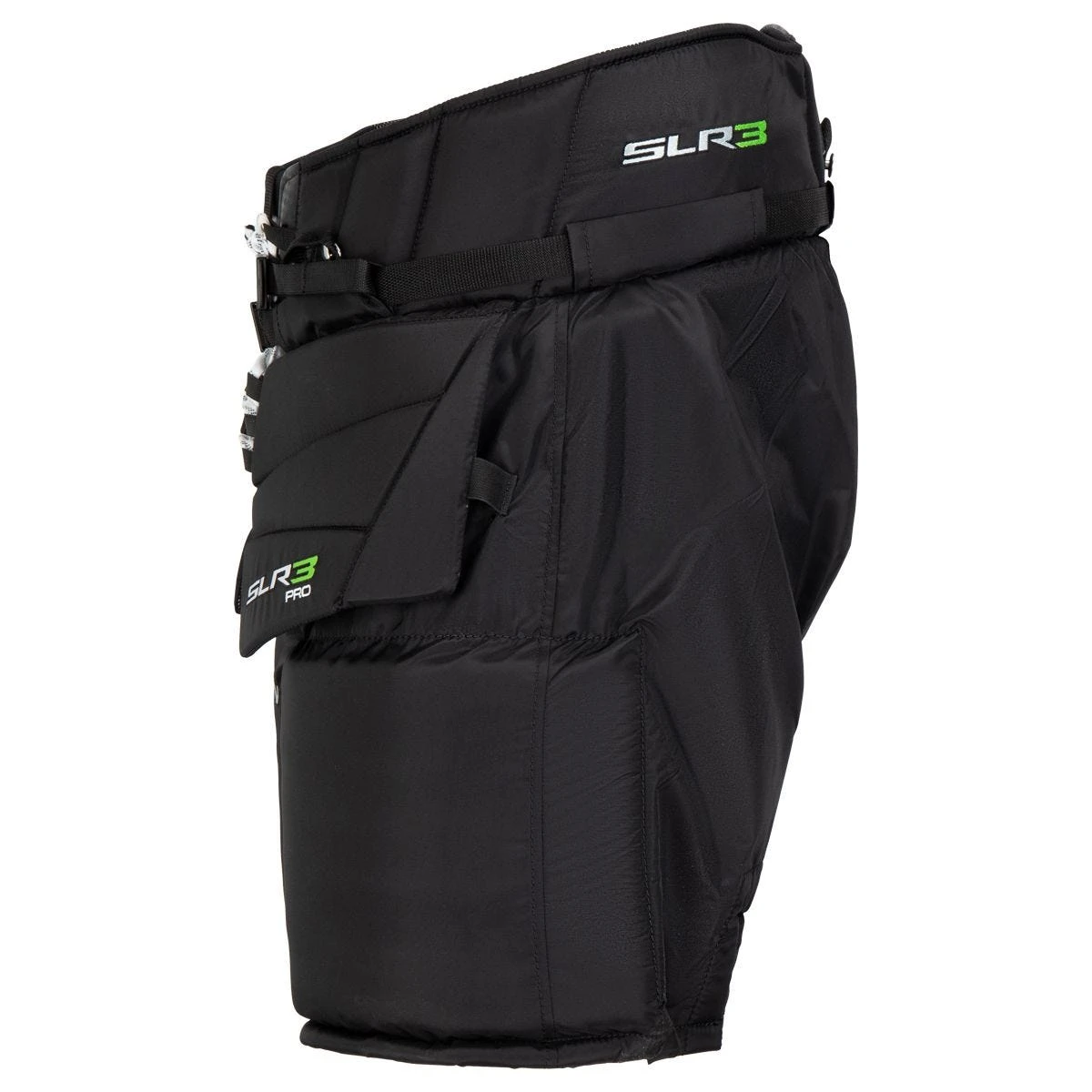 The lower portion of the SLR3 Pro features a wide 11 inch thigh guard profile for increased net coverage and large HD foam five-hole blocks. Double layered side groin pads and padding over inner thigh seams provide increased flexibility and protection coverage.